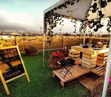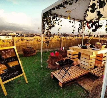 Ofrecemos un espacio privado tipo picnic, cuidadosamente decorado para crear un ambiente íntimo y encantador, para que nuestros clientes puedan sumergirse en la magia de momentos especiales.